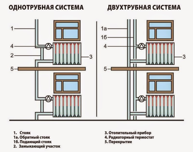 Il existe une différence fondamentale dans les schémas de raccordement des appareils de chauffage, selon acheminement des tuyaux. C'est un tube et deux tubes. Chacun de ces types est divisé en un système avec des autoroutes horizontales ou des élévateurs verticaux.
