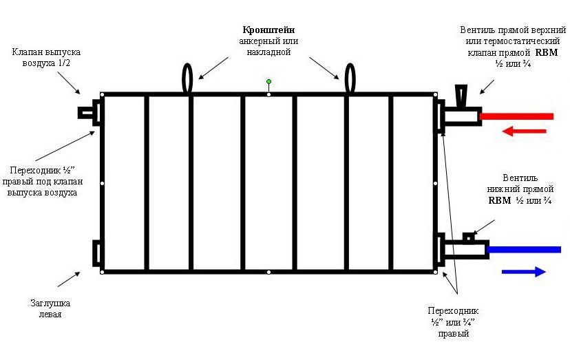Bonjour, Anton. La connexion diagonale est la plus efficace en termes d'efficacité, mais présente un inconvénient important - l'envasement des coins inférieur gauche ou droit, selon le cas particulier. Pour plus de clarté, j'attache un circuit Dans la grande majorité des cas, le problème est résolu en rinçant sans éteindre le radiateur.