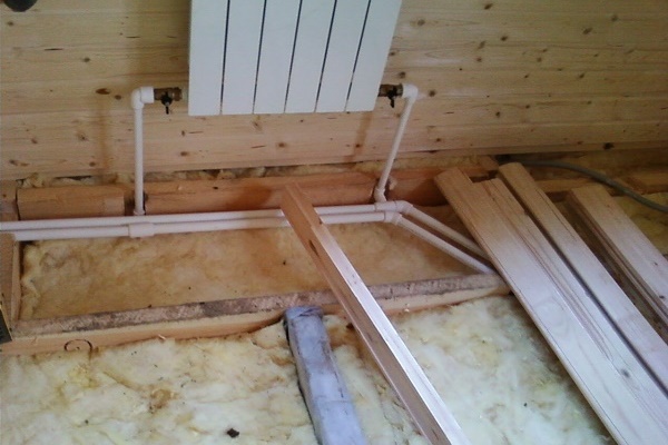 Le schéma dans lequel la connexion inférieure est utilisée est le plus souvent utilisé pour résoudre des problèmes de conception. Lorsque vous devez cacher des tuyaux en les montant dans un mur ou un sol.