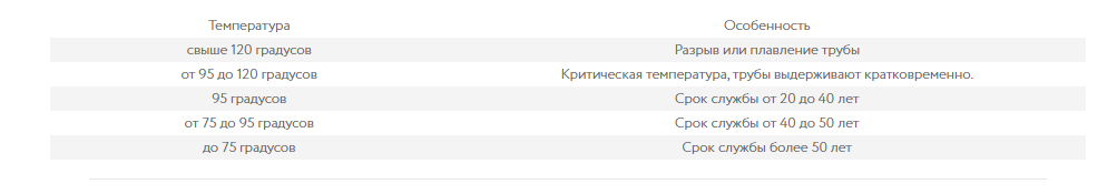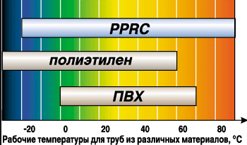 Par conséquent, dans les systèmes de chauffage, des tuyaux en PP (polypropylène) sont utilisés, dans lesquels la température de ramollissement commence à partir de 130 ° C. Cependant, la température de fonctionnement à laquelle la durée de vie ne sera pas réduite est jusqu'à 95 ° C.