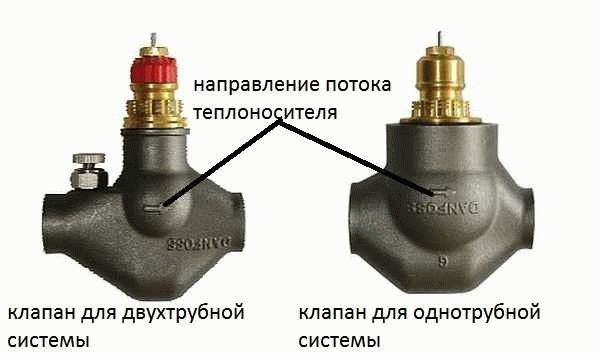 Quels facteurs sont pris en compte lors de l'installation? Une variante de la vanne thermique est pour un tube simple ou double. Plus le sens de déplacement du liquide de refroidissement - il vient d'en bas ou d'en haut.