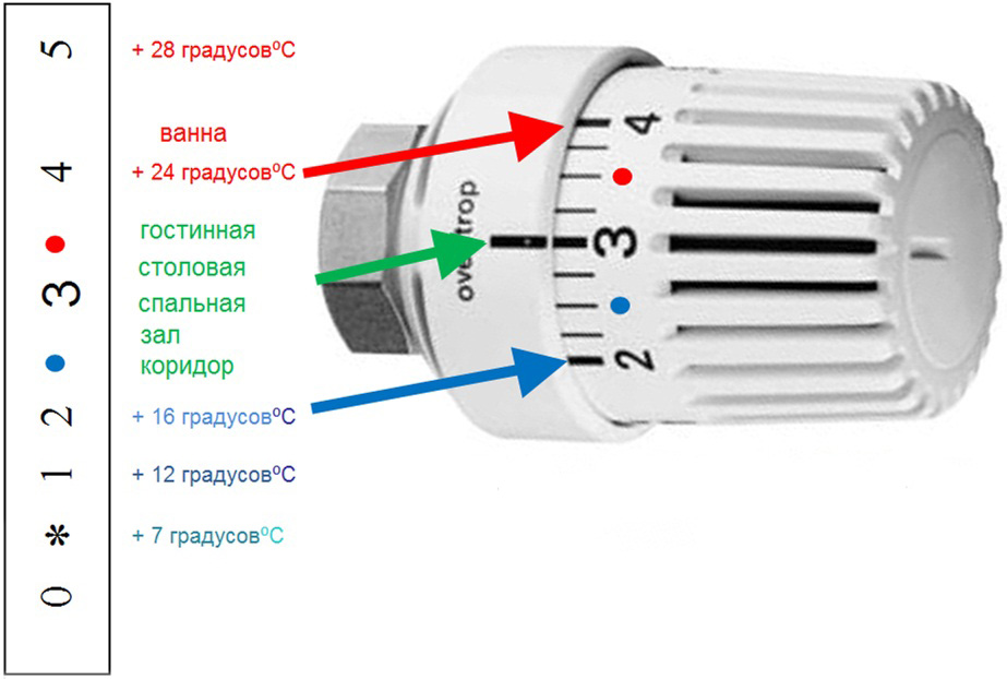 Bien sûr, dans d'autres pièces, la seule façon de ressentir pleinement tous les avantages d'une tête thermique, lorsque dans différentes pièces, vous pouvez définir une température différente. Et la tête thermique fonctionne très simplement - réglez la température souhaitée, et elle la supporte déjà indépendamment en ajustant l'alimentation en eau du radiateur en fonction de la température que vous définissez.