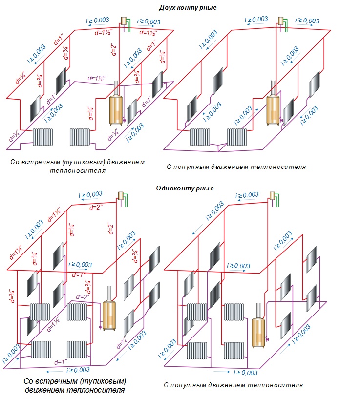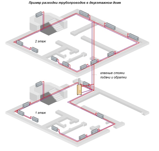 Système de chauffage à deux tubes d'une maison privée: schémas de l'appareil + aperçu des avantages