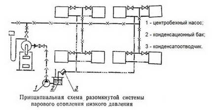 Pour les systèmes ouverts, un réservoir de collecte des condensats est installé à la fin de la ligne et une pompe est montée. Le tuyau qui va de celui-ci à l'appareil de chauffage doit avoir un diamètre plus petit que les autres tuyaux.