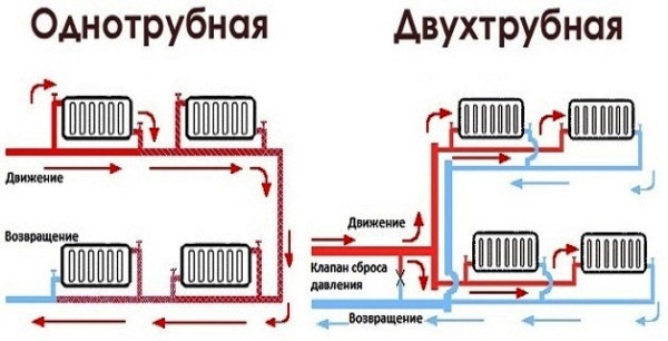 Le circuit de chauffage à deux tuyaux, pour l'alimentation et le retour, présente de nombreux avantages par rapport à un analogue avec une seule ligne de circulation de fluide caloporteur, il est donc souvent utilisé dans l'organisation de l'alimentation en chaleur.