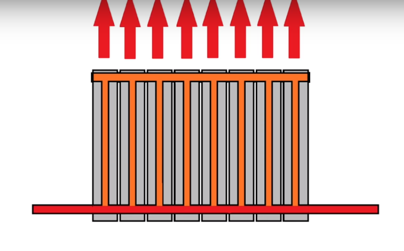 Il se compose d'une paire de collecteurs horizontaux interconnectés par des cavaliers verticaux. Une «enveloppe» est placée au-dessus de toute la structure sous la forme d'un échangeur de chaleur avec la zone de contact maximale possible avec l'air autour.