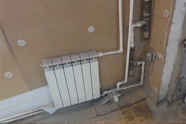 Une fois tous les éléments prêts, les radiateurs sont suspendus à l'aide de vannes d'angle et de raccords combinés, posés dans une dérivation avec des robinets, mesurent la longueur des robinets, coupent l'excédent, retirent les couplages combinés et soudent aux robinets.