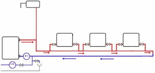 Le schéma ci-dessus présente des inconvénients importants. Par exemple, si vous devez réparer ou remplacer le radiateur, vous devrez éteindre complètement le système de chauffage, vidanger l'eau, ce qui est extrêmement indésirable pendant la saison de chauffage.