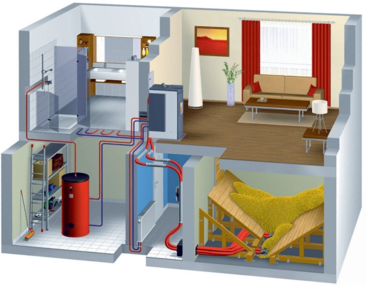 Le principe de fonctionnement du système de chauffage est également commun: l'eau est chauffée, après quoi elle circule à travers la canalisation et dégage la chaleur reçue, réchauffant les locaux.