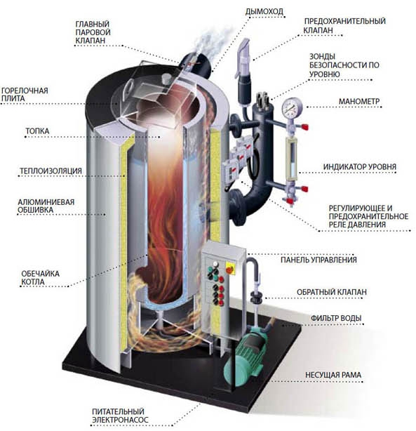 La première option est recommandée pour un usage domestique. Des chaudières spéciales conçues pour le chauffage à la vapeur vous permettent de mettre en place un système basse pression maison privée ou à la campagne. Ils peuvent fonctionner avec différents types de combustibles - charbon, bois, gaz, fioul.