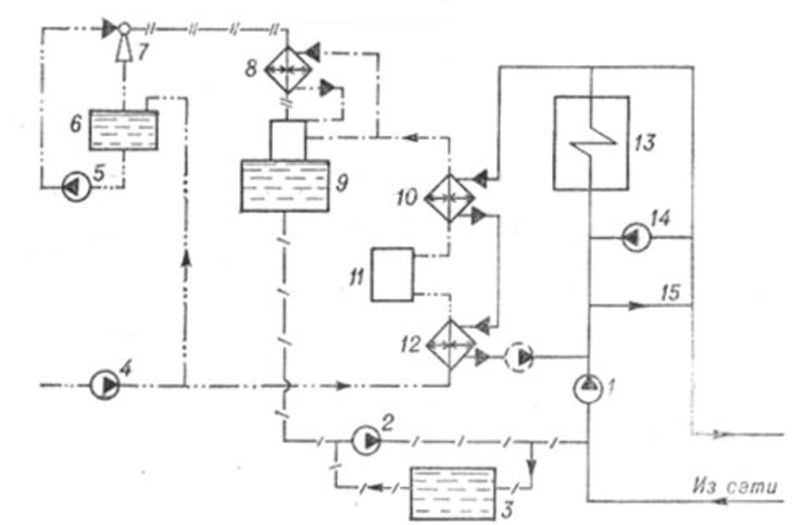 Dans le circuit d'un système de chauffage à vapeur ouvert, il y a un réservoir spécial pour collecter le condensat - un réservoir. De là, à l'aide d'une pompe, le liquide peut être envoyé à la chaudière ou retiré du système de chauffage. Dans le second cas, la chaudière doit être constamment alimentée en eau douce pour la formation continue de vapeur.