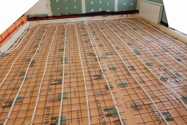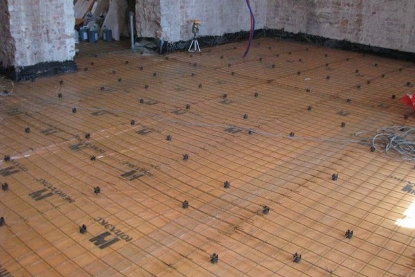 La pose est un défi tuyaux de chauffage au sol sur ce matériau calorifuge. Il est nécessaire d'utiliser des attaches supplémentaires: agrafes, pinces, treillis d'armature, etc.