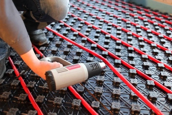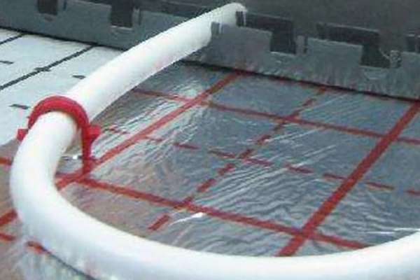 Les bords de la plaque sont équipés de verrous spéciaux, ce qui simplifie son installation. Il y a aussi du matériel avec des marquages déjà en vente. Les tuyaux sont fixés avec des supports en plastique, qui collent simplement dans les plaques au bon endroit.