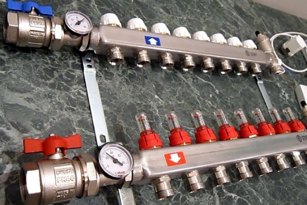 Si vous installez le collecteur sans débitmètres, la fonction de chauffage sera altérée. Lorsque le système est mis en service, le liquide de refroidissement aura tendance à pénétrer dans des circuits plus petits, avec une résistance minimale. En conséquence, les pièces avec des courts-circuits seront chauffées selon la conception et avec de longues, elles ne seront pas chauffées.