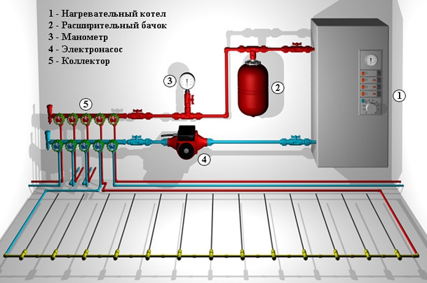Les communications empilées se connectent à collecteur de distributionà travers lequel ils sont connectés au système de chauffage de la maison, à la chaudière, etc. Les tuyaux sont coulés avec une chape en béton, après quoi il faut attendre qu'il sèche complètement. Reste à vérifier le fonctionnement du système et à poser le parquet.