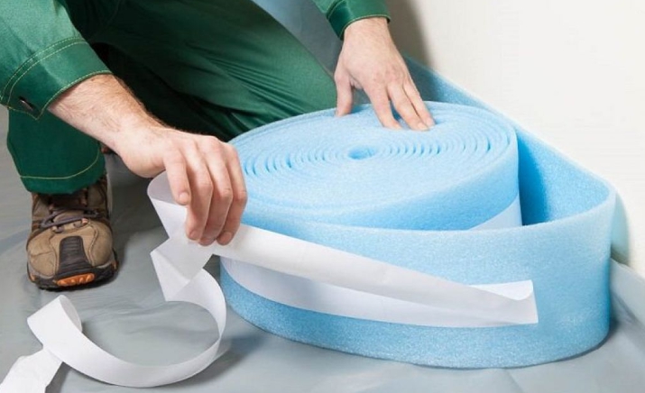 Avant de commencer l'installation, un ruban amortisseur est placé autour de la pièce pour compenser l'expansion thermique pendant le fonctionnement du système. Sur de grandes surfaces, il s'installe non seulement le long des murs, mais aussi dans les coutures passant au milieu de la pièce.