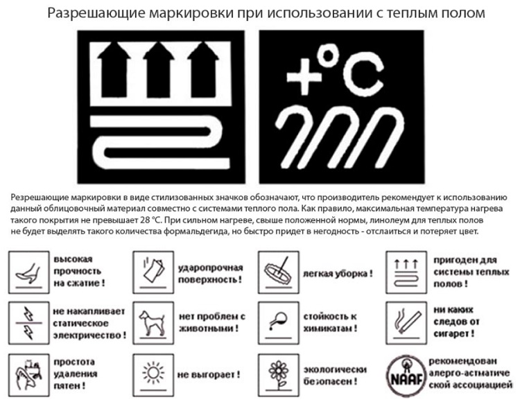 Lors du choix du linoléum, vous devez utiliser correctement les informations chiffrées dans les marquages apposés par le fabricant. Il codait des informations sur la composition de ce type de revêtement, la possibilité de chauffage, la température maximale admissible.