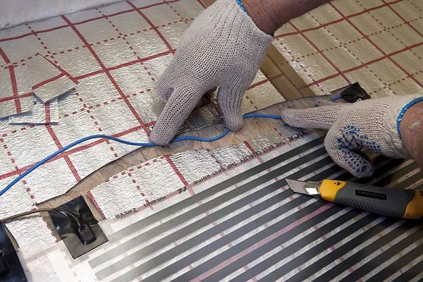 Ensuite, le point de connexion est isolé. Là où l'isolation est installée, ainsi qu'à l'endroit où le capteur de température est fixé au film, des épaississements apparaîtront. Ils peuvent compliquer la pose du revêtement de sol.