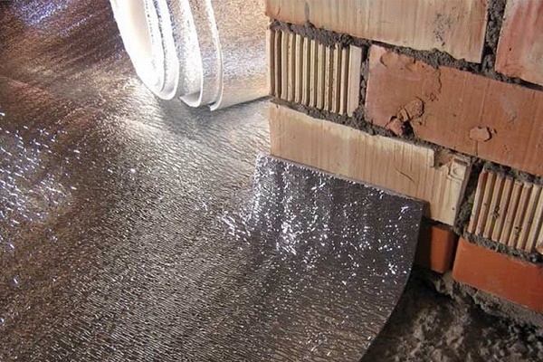 Comme imperméabilisation, du polyéthylène en rouleau ou un matériau de couverture est utilisé, ainsi qu'une isolation fondue qui nécessite un chauffage. Les rouleaux sont coupés en morceaux de la longueur souhaitée, qui sont disposés sur toute la surface de la pièce avec un chevauchement de 15-20 cm et enroulés sur les murs.