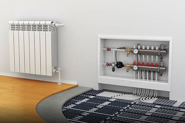 Si le chauffage par le sol est connecté à une colonne montante commune, l'unité de mélange doit être équipée d'une pompe, d'une dérivation et d'une vanne thermostatique.Il y a tellement de dispositifs possibles qu'il vaut mieux consulter un spécialiste pour sélectionner un design.