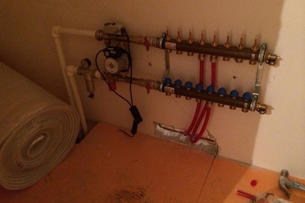 Au même stade, vous pouvez fixer l'armoire collectrice et préparer une ondulation protectrice, qui est portée sur les tuyaux à la jonction avec le nœud et la chape en béton, lors du déplacement de pièce en pièce ou à la frontière de deux circuits. L'installation des tuyaux commence par des zones éloignées du site.