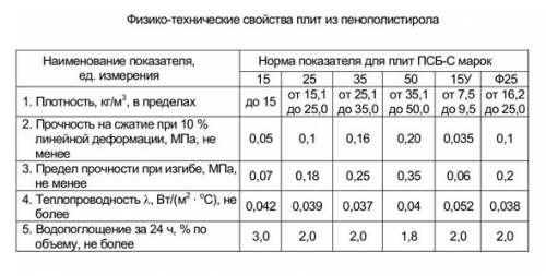 En termes de paramètres, elle est inférieure à la mousse de polystyrène extrudé, et cela peut être vu dans le tableau des propriétés physiques et techniques des plaques de polystyrène expansé: