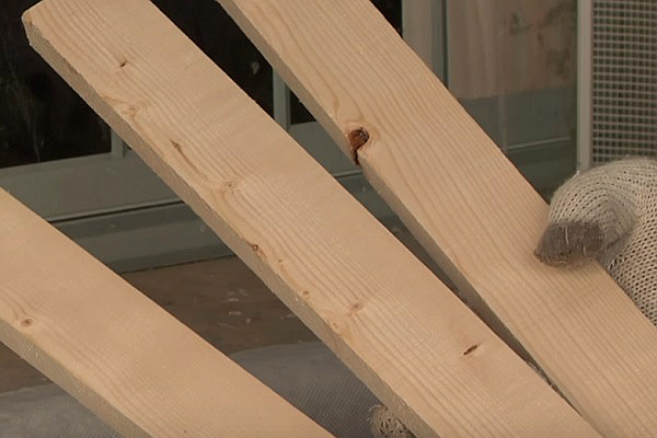 Les panneaux de particules orientées (OSB) sont posés sur de la laine minérale sur une caisse de blocs de bois ou de rails métalliques. Il s'agit d'un matériau composé de copeaux de bois, de résines et d'adhésif polymère.
