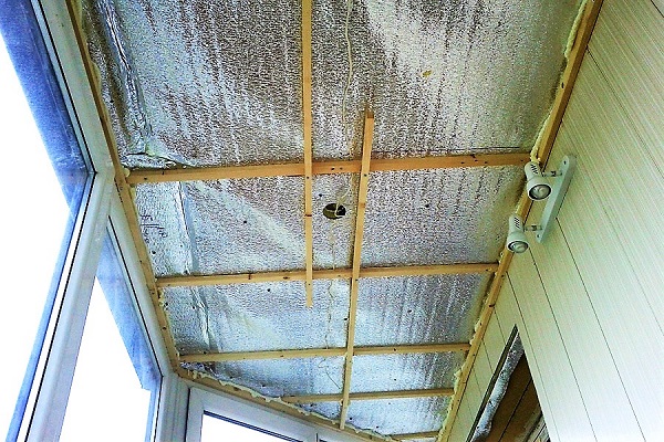 Le plus souvent, des panneaux en plastique lisses ou une doublure en bois facile à monter sont utilisés comme finition. La méthode d'installation des deux types de revêtement vous permet de fixer n'importe quel matériau sur le plafond: et mousse de polystyrène extrudéet une épaisse laine minérale et une fine feuille de penofol.