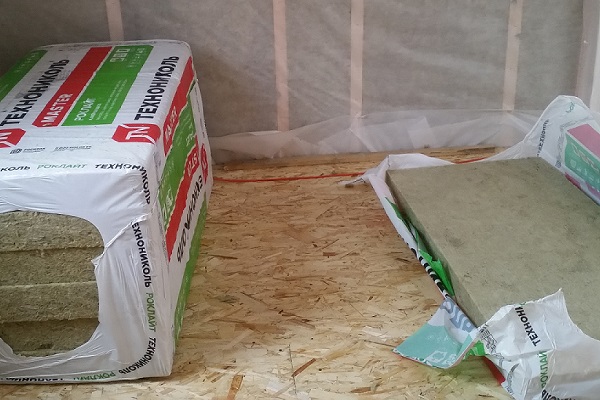 La largeur de la couche isolante est de 100 mm (2 couches de laine minérale de 50 mm chacune).Ceci doit être pris en compte lors de la planification de la finition des murs, surtout si cela "enlève" également quelques cm d'espace libre. Vous devez choisir une chose - soit une isolation de qualité et du silence, soit une pièce plus spacieuse, mais la fraîcheur et le bruit.