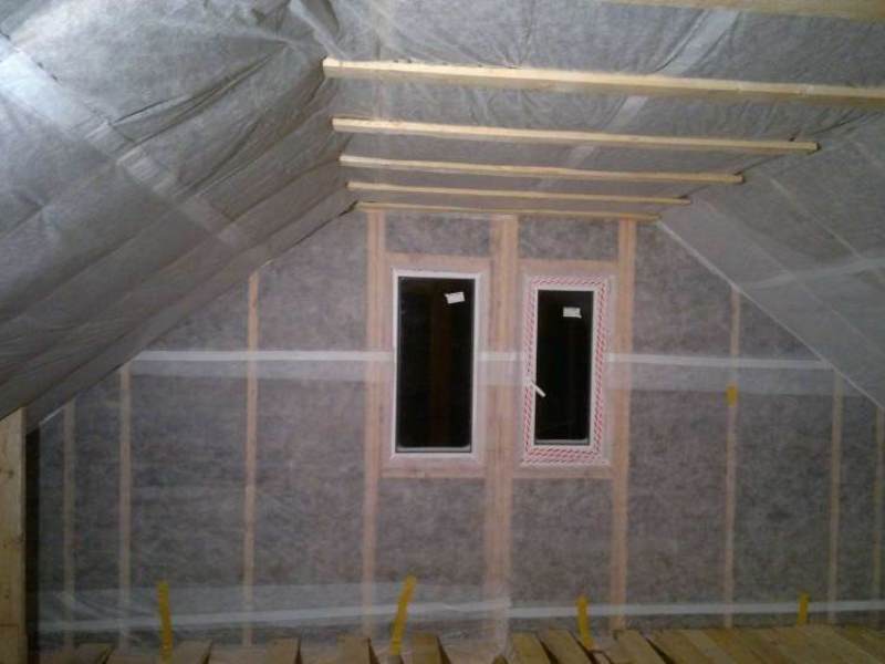 À la fin de l'isolation du grenier, la caisse est remplie sous la doublure. Il est constitué de barres de 15 à 25 mm d'épaisseur de sorte qu'un petit espace de ventilation reste au-dessus du pare-vapeur.