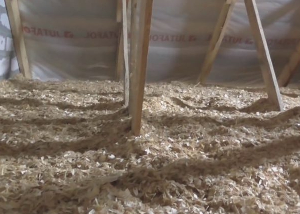 Les déchets de bois en vrac sont souvent mélangés à des copeaux et répartis sur le sol depuis le grenier.