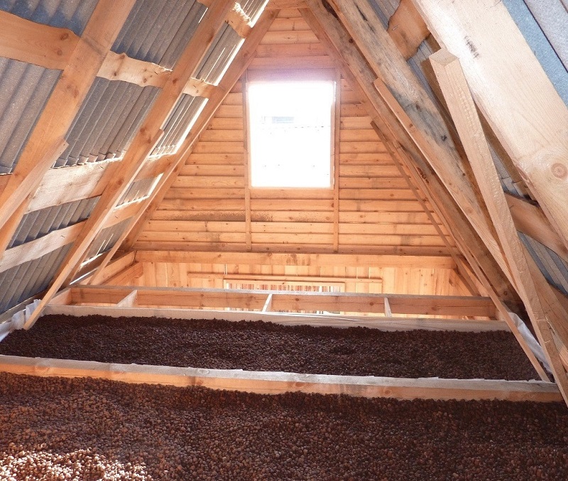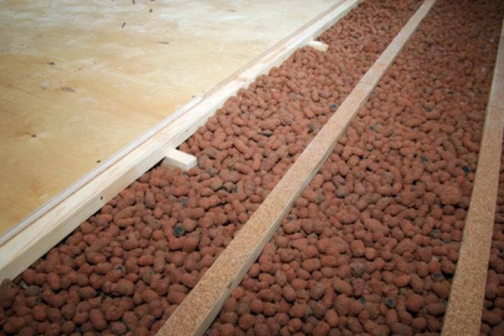 Le sol au-dessus de l'argile expansée facilite le mouvement dans le grenier et augmente l'efficacité du gâteau calorifuge.