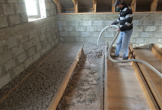 Le principal avantage des éléments en vrac est l'absence de coutures qui contribuent aux fuites de chaleur, ainsi que la capacité de combler même les plus petits vides et lacunes. Le principal inconvénient isolation du plafond matériaux en vrac - tendance à rétrécir, inhérente à tous les appareils de chauffage de cette catégorie.