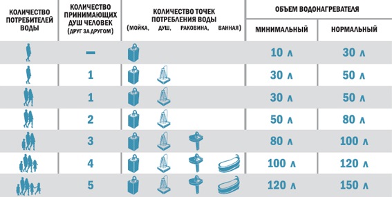 Le principal critère de performance de la chaudière est considéré comme le volume de son réservoir interne, et la puissance de l'élément chauffant dans les produits d'usine est déjà «liée» aux dimensions du réservoir. Par conséquent, la taille du lecteur est sélectionnée uniquement en fonction des besoins de la famille.