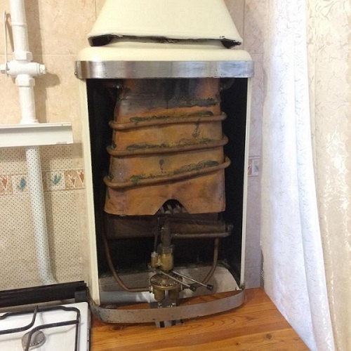Tout d'abord, le flux de gaz et d'eau froide vers la colonne est bloqué. Le gaz doit être coupé avant de commencer les travaux, même s'il n'est pas prévu d'inspecter la partie gaz de l'équipement. L'unité d'eau est connectée au gaz, "frapper" qui peut causer de gros problèmes.
