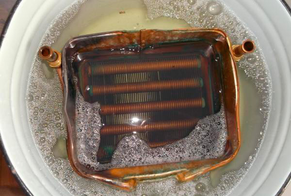 Les spécialistes retirent le tartre à l'aide de réactifs spécialisés. Un artisan à domicile peut le manipuler à l'aide d'une solution d'acide citrique ou de vinaigre. Pour nettoyer l'échangeur de chaleur, il faut le retirer, le placer dans une solution tiède avec l'ajout de vinaigre. Vous pouvez également utiliser des produits spéciaux achetés - "chimie", conçus pour nettoyer les échangeurs de chaleur.