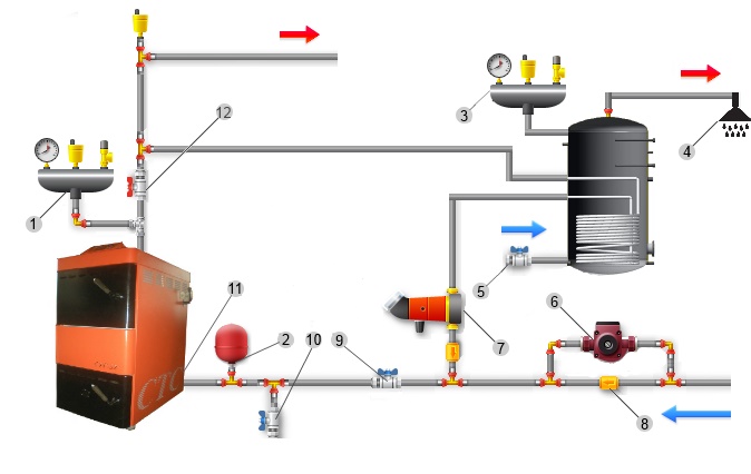 Une erreur courante devrait être l'installation d'une chaudière sans vase d'expansion. Le schéma dans lequel l'introduction du vase d'expansion est envisagé s'applique spécifiquement aux chauffe-eau à accumulation.