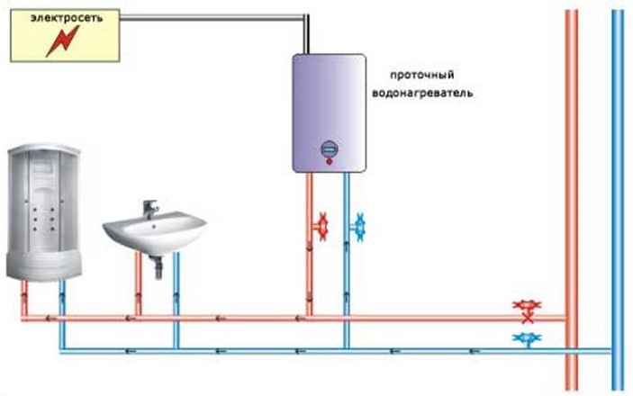 Il est clair qu'avant d'insérer des tuyaux, l'eau chaude et froide entrant dans l'appartement doit être fermée.Une vanne d'arrêt doit être installée entre la colonne d'eau froide et le réchauffeur afin que, si nécessaire, l'eau entrant dans l'appareil puisse être fermée. Toutes les connexions sont soigneusement scellées.