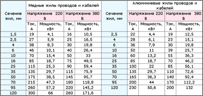 Dans ce cas, il faut prendre en compte la tension de fonctionnement, les phases, le matériau dont le câble est fait, si le câblage sera caché, etc. Pour les chauffe-eau, un câble à deux conducteurs en cuivre ou en aluminium est généralement utilisé, tension 220 V, monophasé.