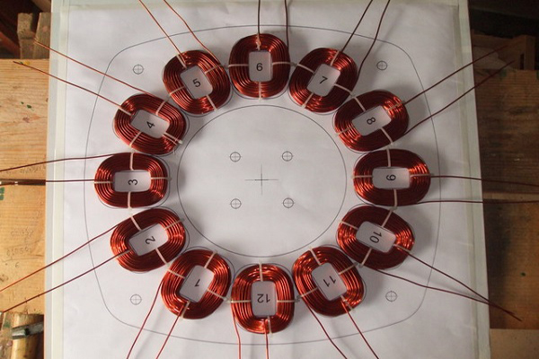 Quando os núcleos estiverem prontos, você precisará instalar os ímãs nos lugares certos. Primeiro, é feito um revestimento de estanho para o núcleo, após o qual os ímãs são colocados a uma distância igual um do outro.