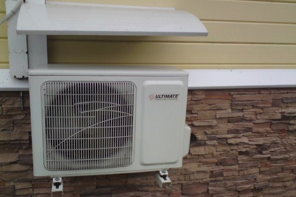 Instale a unidade externa a uma distância de 2 a 10 m da casa. É importante construir uma base sob ela e colocar um dossel para proteger a estrutura da precipitação. Também é necessário fixar a grade na frente do ventilador para evitar que sujeira, detritos e folhas entrem nas pás e tubos do ventilador.