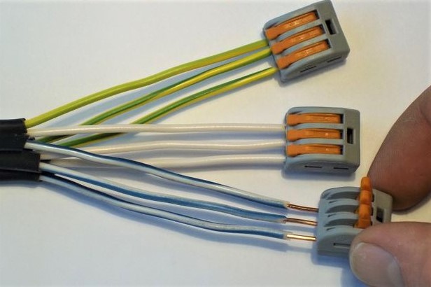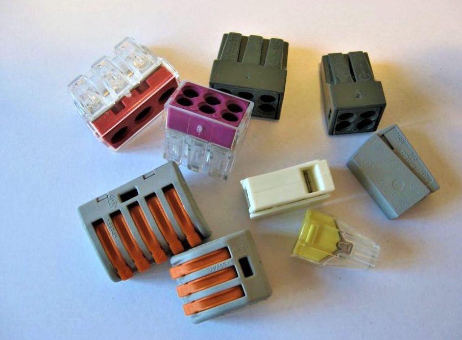 A maneira mais fácil é conectar os fios usando os blocos de terminais Wago - dispositivos especiais que fornecem rápida e facilmente contatos confiáveis e, se necessário, fixação no lugar certo.