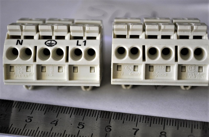 - Séries 862 - os blocos de caixa são projetados para conectar até 4 condutores, permitem comutação compactada, selada com ultra-som e núcleos despreparados.