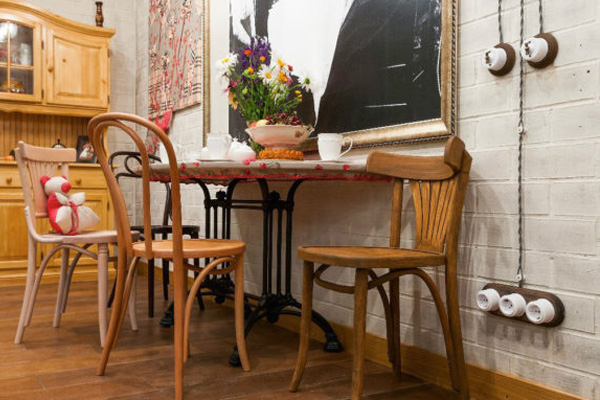 Outra opção é a fiação aberta. Isso é verdade se a sala estiver decorada em estilo retrô - um belo entrelaçamento aberto de fios que vão para tomadas e interruptores ressoa harmoniosamente com outros itens do interior.