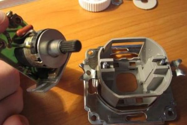 O redutor é desmontado, familiarizado com o design e em peças montadas no lugar do comutador.