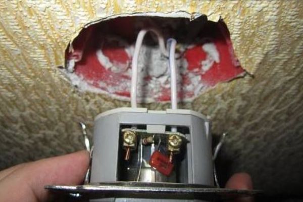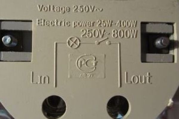 O primeiro contato é para a fase de entrada proveniente da caixa de distribuição, o segundo é para o núcleo de carga de saída, que é enviado para a fonte de luz. Como dispositivos de iluminação, um candeeiro de mesa, um candeeiro de pé, um lustre, um candelabro de parede ou um grupo de focos podem atuar.