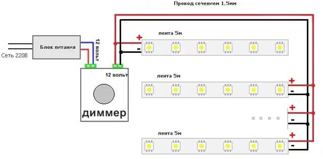 A escolha do esquema depende de muitos fatores, incluindo modelos de dimmer, método de conexão - separado ou com interruptores, o número de dimmers ou dispositivos de iluminação.
