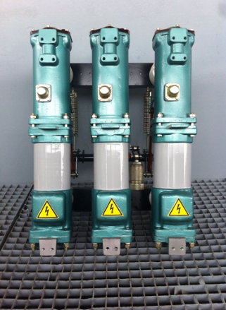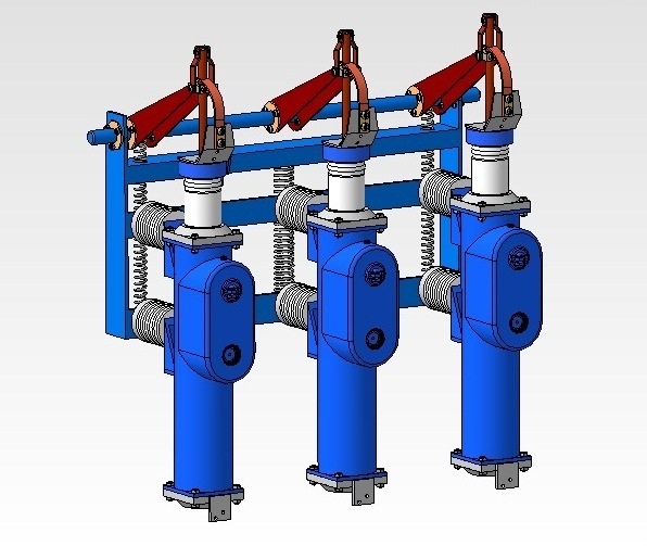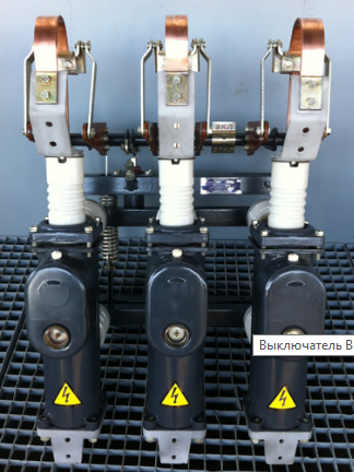 Para interruptores desse tipo, projetados para painéis de distribuição internos, os contatos são colocados em um tanque de aço. Tensão MV de 35 kV e superior possui uma concha de porcelana. O equipamento mais usado está suspenso de 6 a 10 kV. Seu corpo é fixado em um quadro comum para todos os pólos. Todos os três pólos têm uma câmara de arco, cada um projetado para um contato aberto e em alta tensão de 2 ou mais.