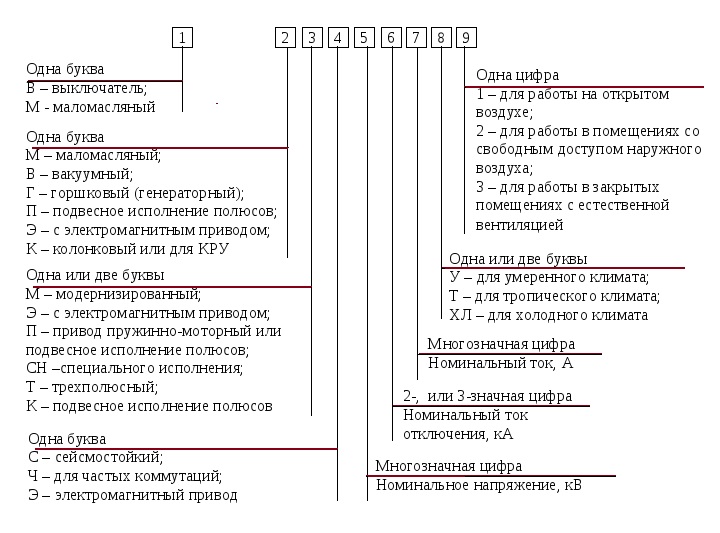 A decodificação das marcações feitas pelo fabricante no interruptor de óleo permitirá que você se familiarize com as informações básicas sobre ele. Vamos examinar, por exemplo, a marcação do switch VMG-133. O primeiro caractere "B" indica que você possui um comutador.