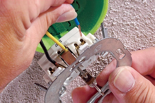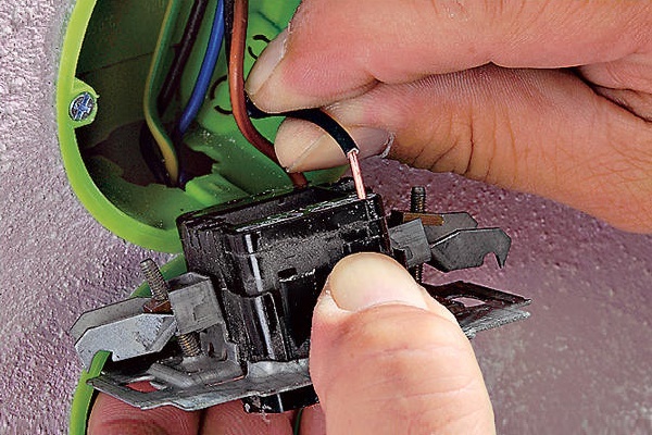 Para instalar uma tomada semelhante e um interruptor da lâmpada, são executadas várias etapas simples: